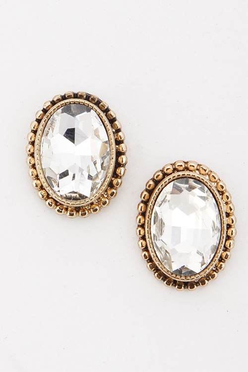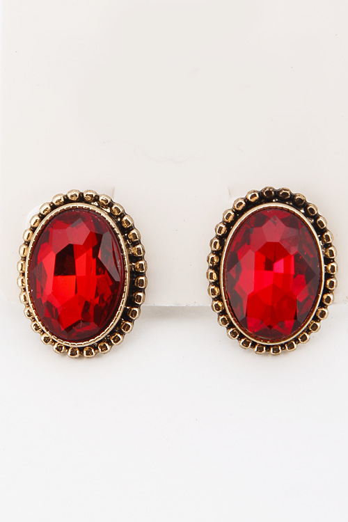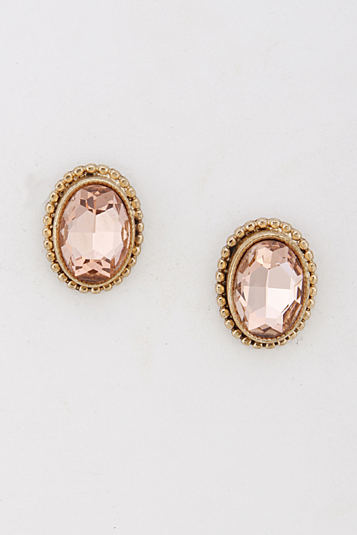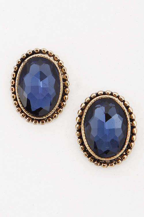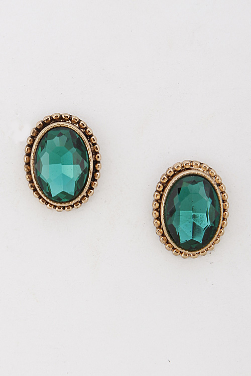- * Antique Oval Faux Gem Stone Earrings 5KAD4 * 0.5 x 0.8" approx.