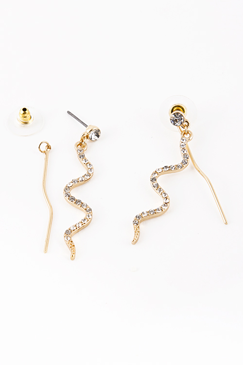 - * Swirl Rhinestone Studded Two Piece Stud Earring 5CBA2 * 2" approx.