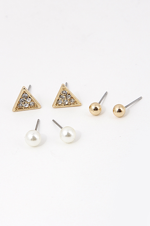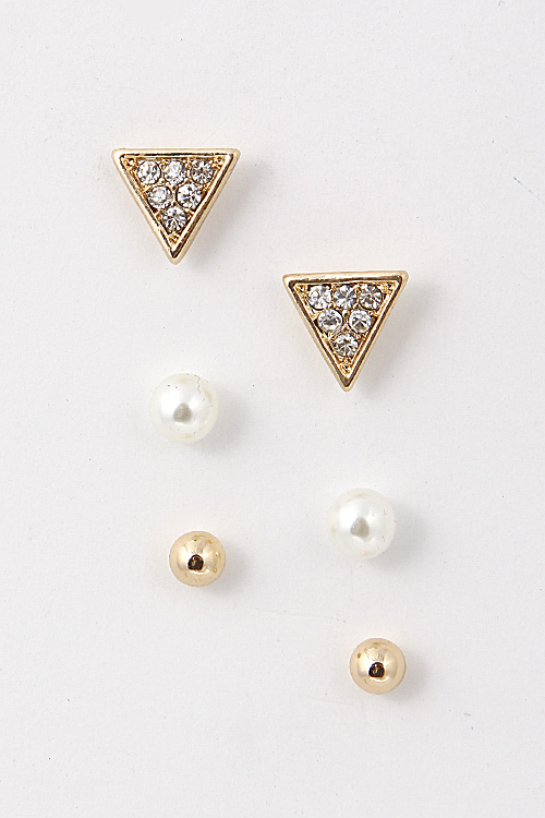 - * Triangle Shape Studded Pearl Set Earring 5BAG6 * .4 x .4/ .2 x .2/ .1 x .1" approx.