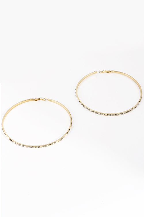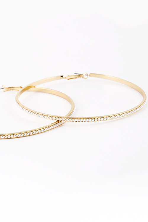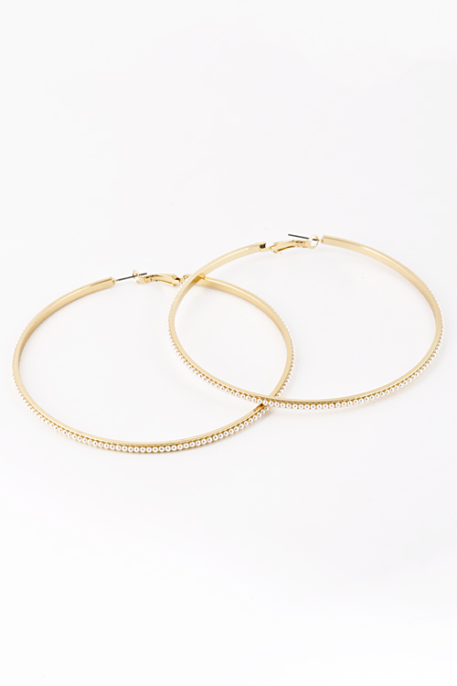 - * Basic Stone Pearl Studded Rim Hoop Earring 5CBA3 * 3.5 x 3.5 x .1" approx.
