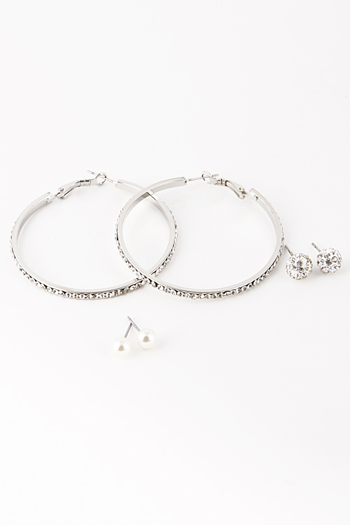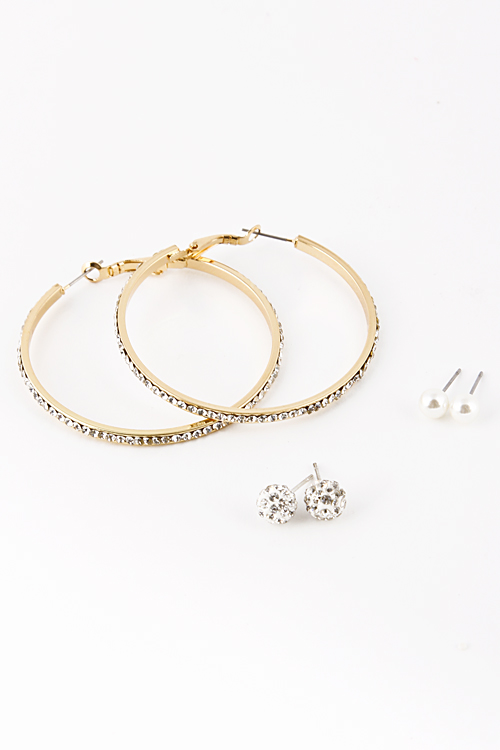 - * Rhinestone Studded Hoop Pearl Stud Set Earring 5CBA2 * .2 x .2/ .3 x .3/ .2 x 2" approx.