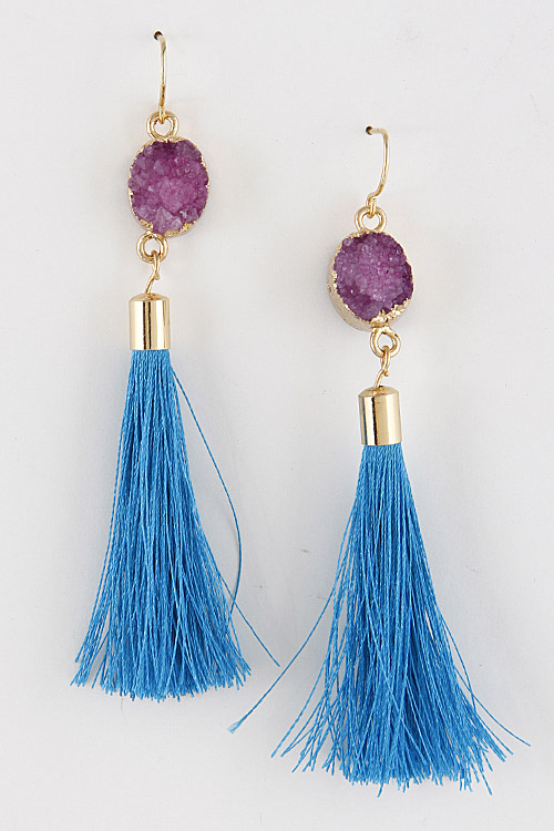 - * Tassel Lovers Earrings with Stone 7EBA8 * 0.5 X 2.2" approx.