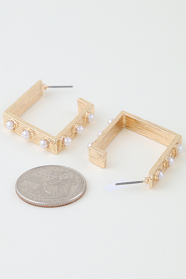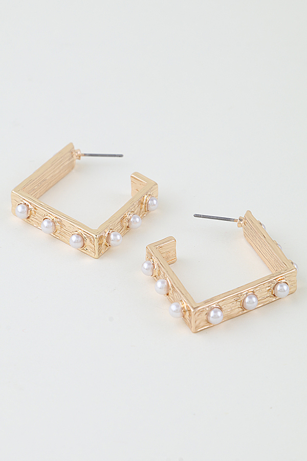 - * These Pearl Studded Box Hoop Earrings from H&D Accessories feature a structured, angular hoop silhouette with a textured surface. Adorned with evenly spaced small pearls, the design balances modern geometric shape with delicate detailing. The earrings have a secure post-back closure, ensuring a comfortable fit. Lightweight yet sturdy, they blend contemporary style with timeless elegance, making them a distinctive accessory piece.