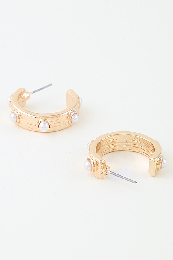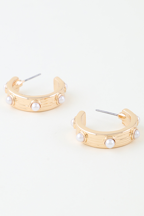 - * These Pearl Studded Hoop Earrings from H&D Accessories feature a sleek, structured hoop design adorned with small, round pearl accents. Crafted with a smooth, polished finish, they’re lightweight for all-day wear. Ideal for elevating everyday outfits or adding a subtle touch of elegance to casual gatherings. A versatile accessory that balances classic charm with modern simplicity.