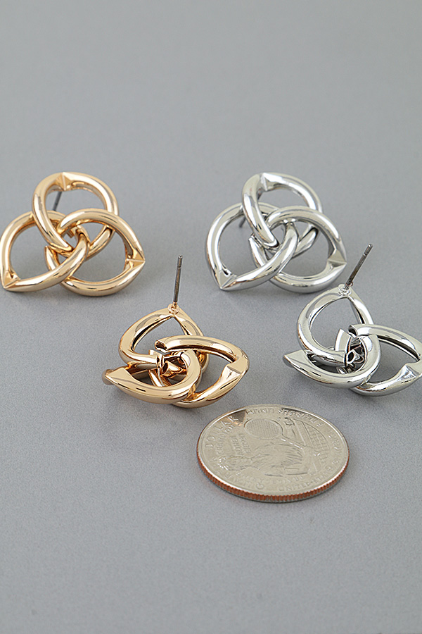 - * Polished Triple Symbol Stud Earrings from H&D Accessories feature an intricate interlocking triple-loop design with a polished finish, blending modern sophistication with symbolic charm. Crafted with lightweight, durable materials, these earrings offer a comfortable fit for all-day wear, whether you’re dressing up for a special occasion or adding a refined touch to a casual outfit. The bold, geometric silhouette creates a striking focal point, making them ideal for professional settings, social gatherings, or elevated everyday styling. Whether you’re heading to a business meeting, a dinner party, or a creative event, these earrings deliver a polished, head-turning aesthetic that transitions seamlessly between any setting.