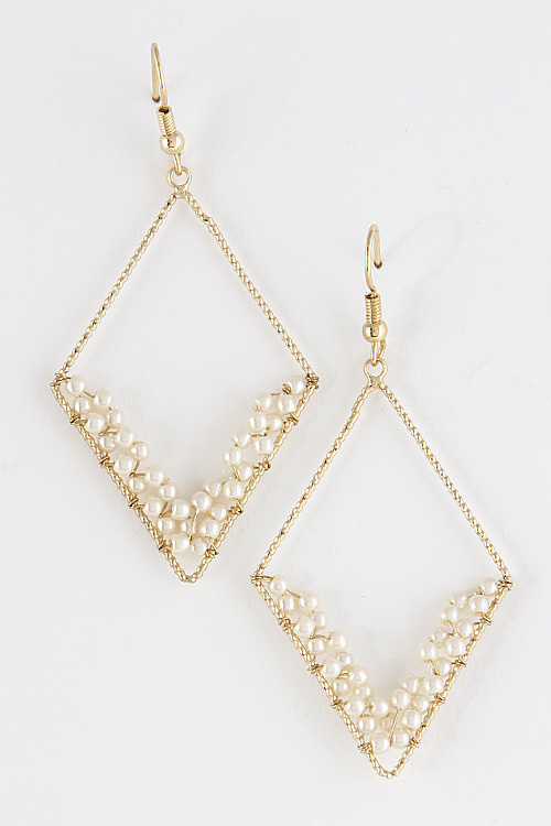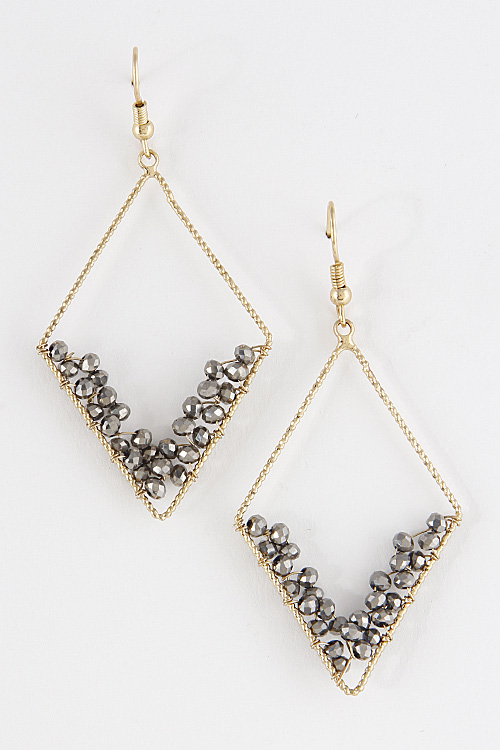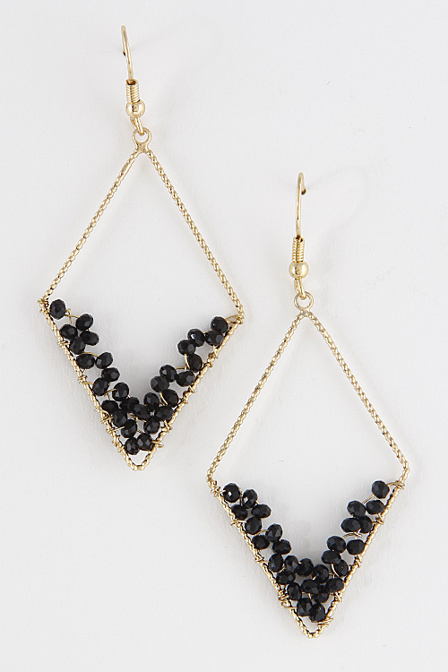 - * Diamond Shape Hook Beaded Earrings 6IBE7 * 1.2 x 2.5" approx.