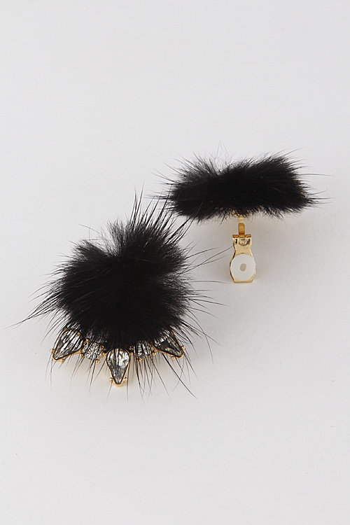 - * Faux Fur Rhinestone Earrings 6IBE7 * 1 X 1.5" approx.