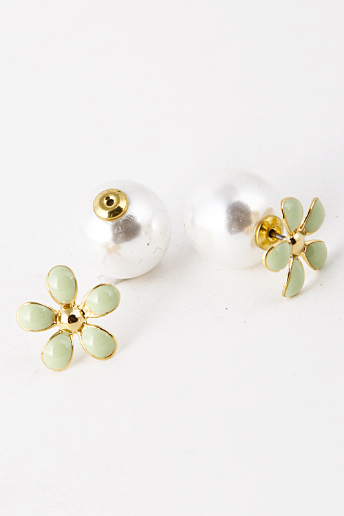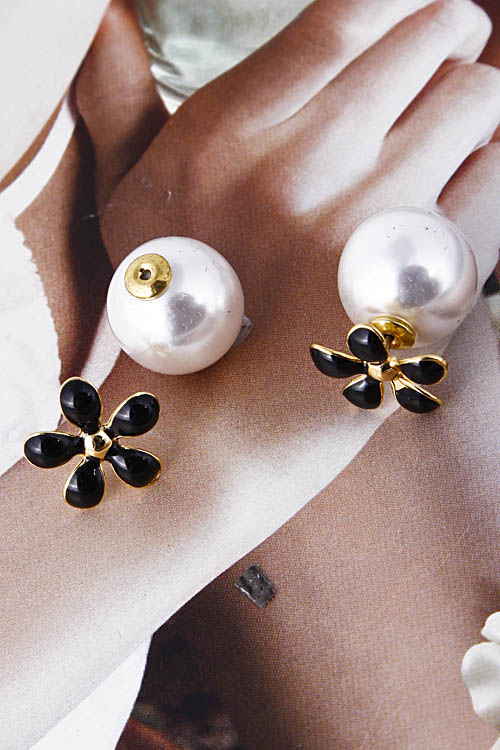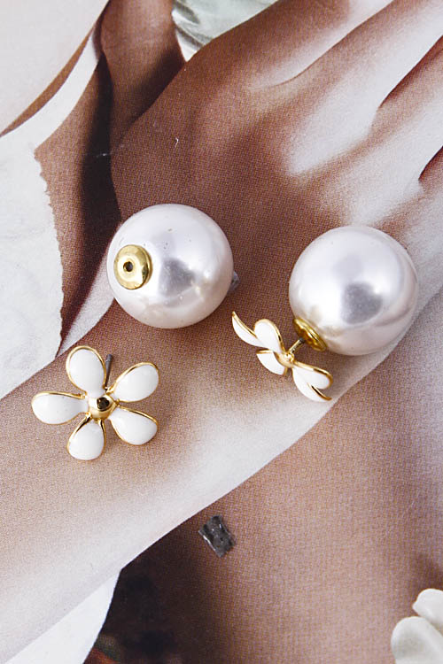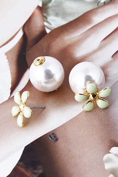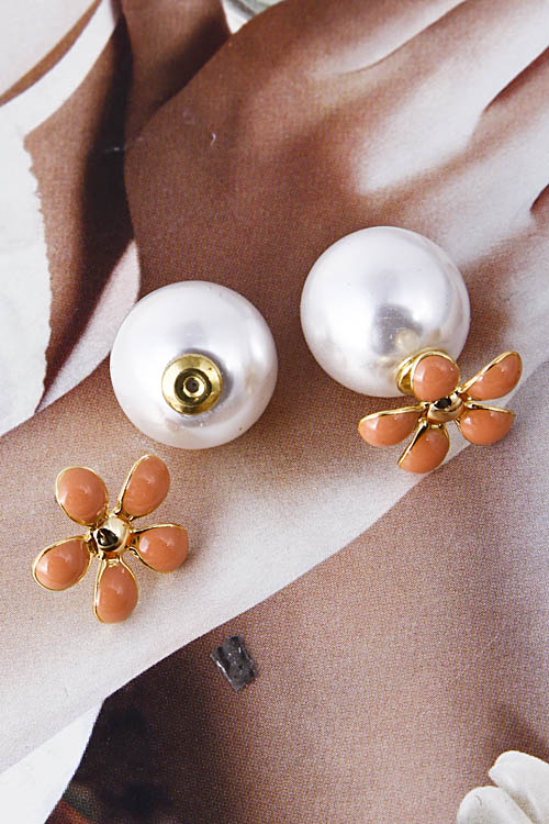 - * Color Painted Flower Petal Pearl Stud Earring 5BBI3