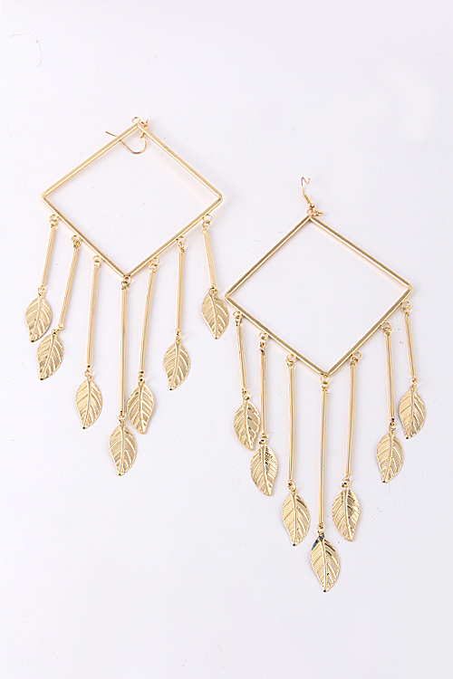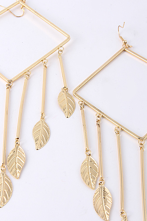 - * Square Cutout Leaf Dangle Earring 5ABG8 * 3.1 x 3.1 x 3.8" approx.