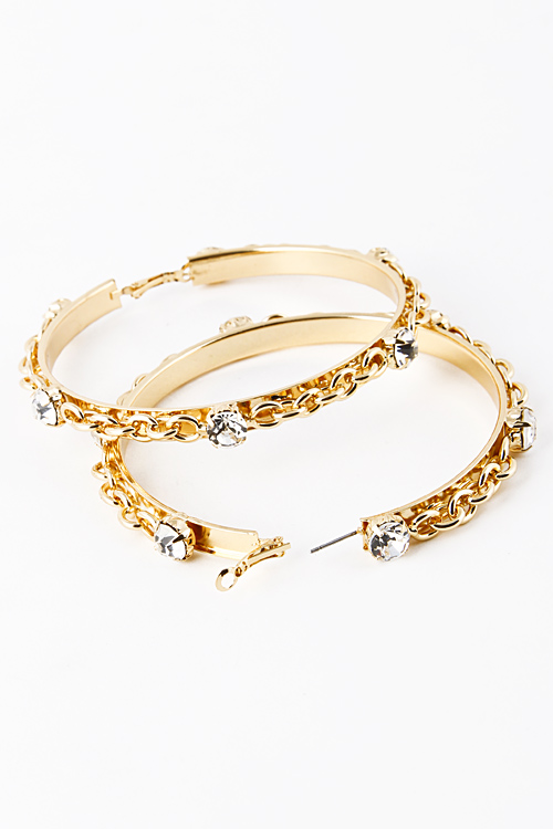 - * Rhinestone Chain Attached Hoop Earring 5CAD3 * 3.6 x .3" approx