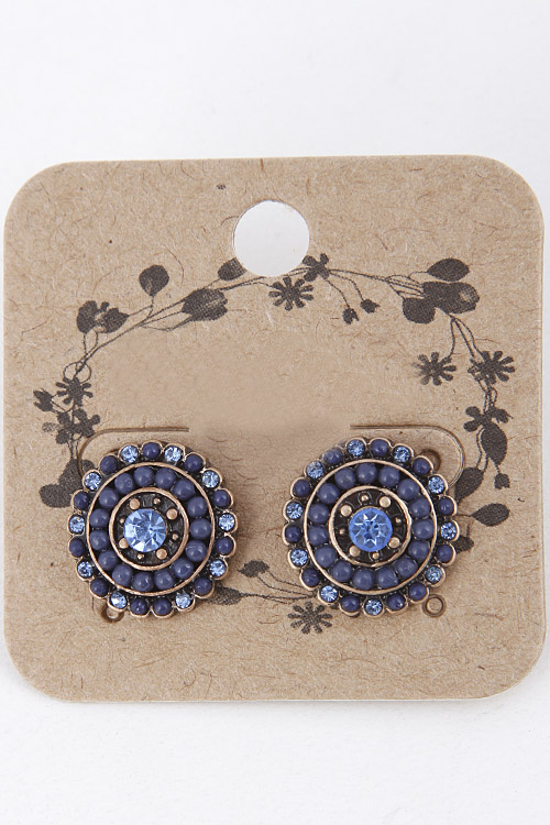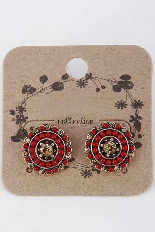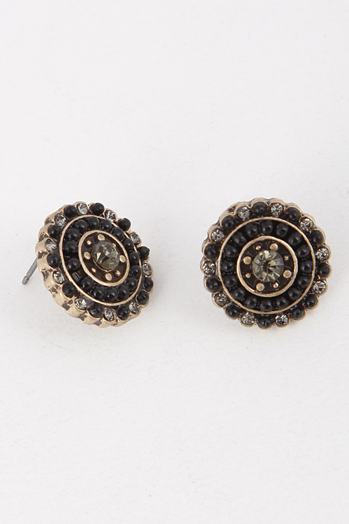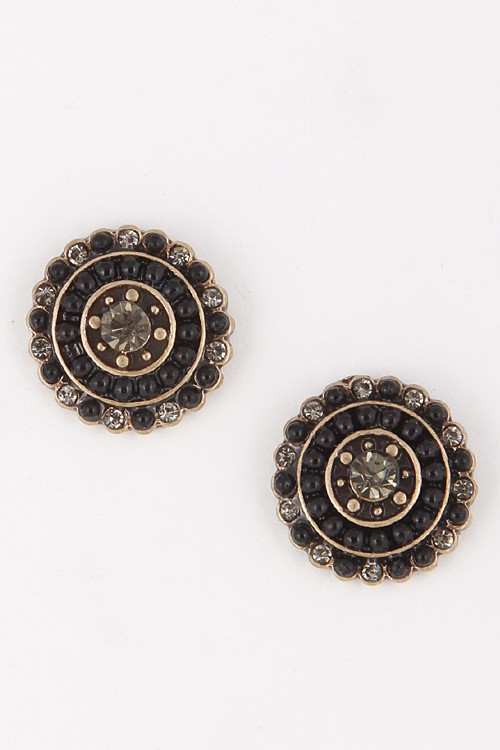 - * Button Style Beaded and Rhinestone Stud Earrings 5ICG6 * 2" approx.