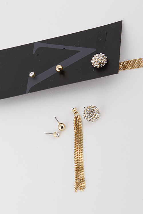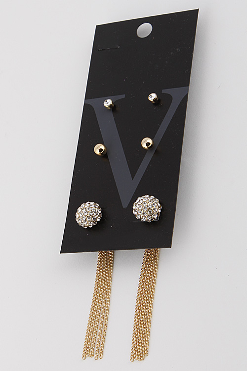 - * Round Stud Tassel Earring Set 6ABI1 * 0.2 X 0.2" approx. * 0.2 X 0.2" approx. * 0.5 X 3" approx.