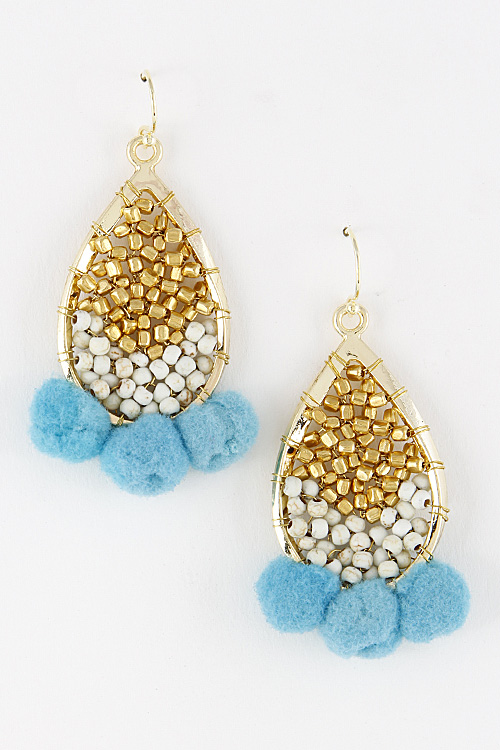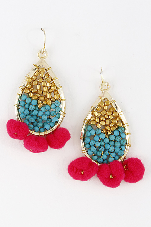 - * Tear Drop Beaded Faux Ball Hook Earrings 6JBD2 * 1 X 2.5" approx.