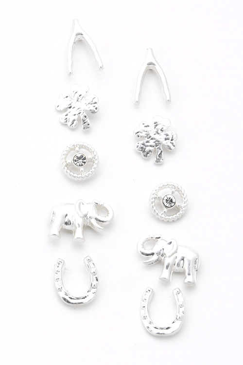- * Six Piece Charm Stud Set Earring 5FDA10 * .3 x .3/ .6 x .6" approx.