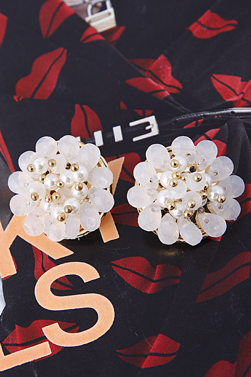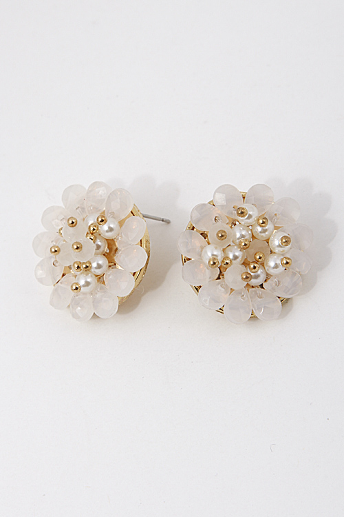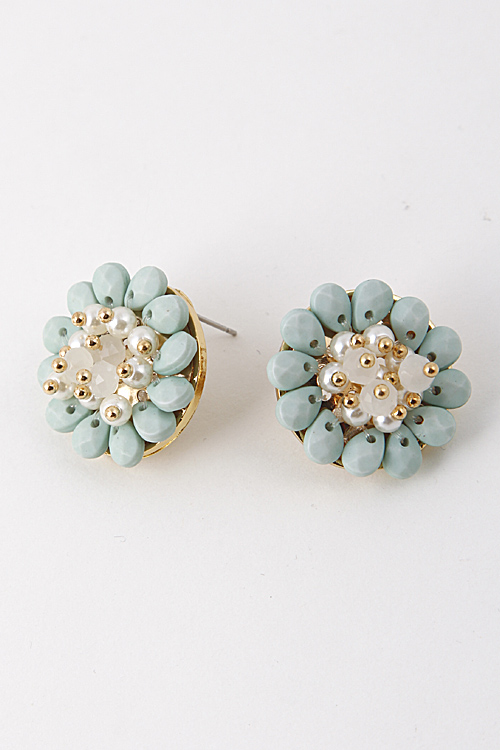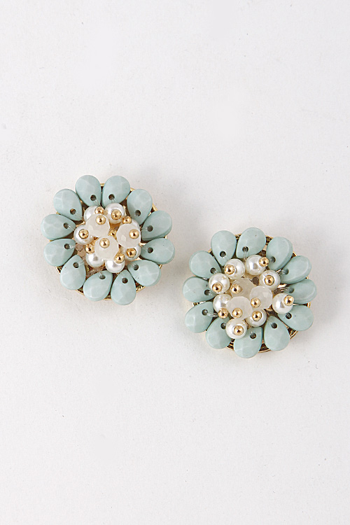 - * Floral Shape Bead Detailed Stud Earring 5BAG6 * 1 x 1" approx.