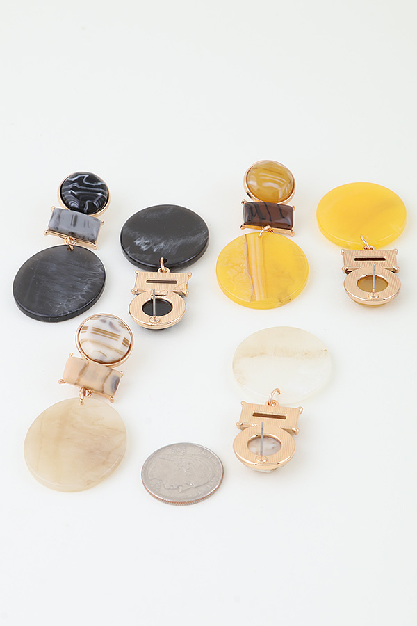 • * These are the Multi Watercolor Stone Drop Earrings from H&D Accessories. They feature a layered design with various shaped stones that have a watercolor-like pattern, creating a sophisticated and artistic look. The drop style adds a touch of elegance and visual interest. You can wear them when attending a modern art exhibition, going to a chic dinner party, or pairing them with a tailored suit for a business event, instantly bringing a sense of artistic sophistication to your outfit.