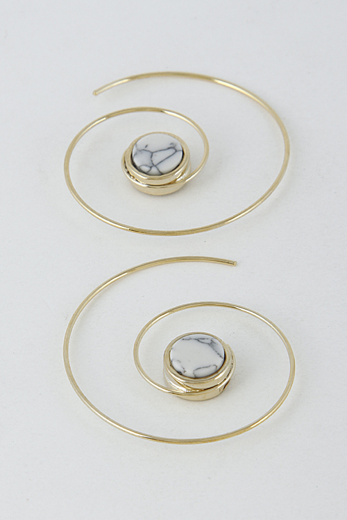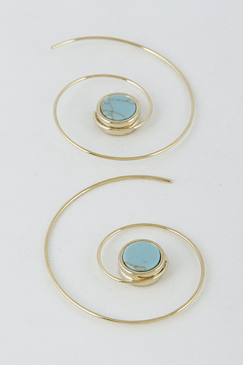 - * Circle Swirl Stone Earrings 6HAB7 * 1.2 x 1.6" approx.