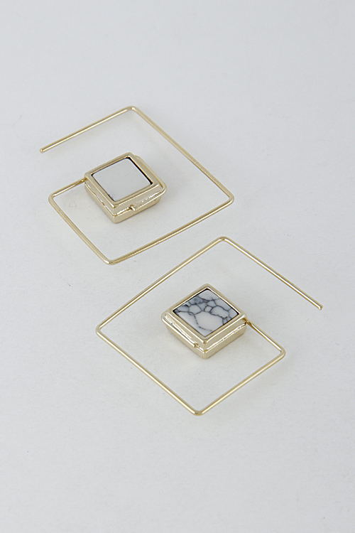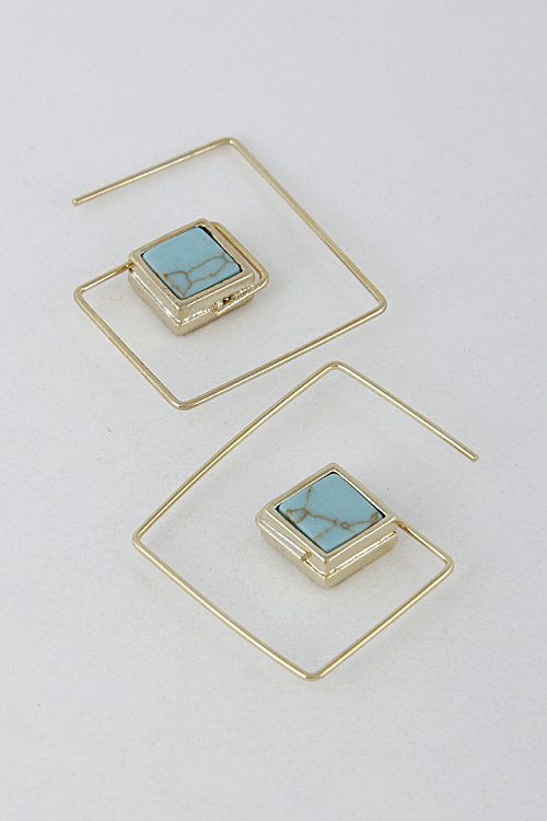 - * Thin Square Shape Stone Earrings 6HAB7 * 1.2 x 1.5" approx.