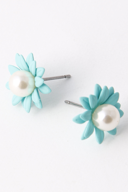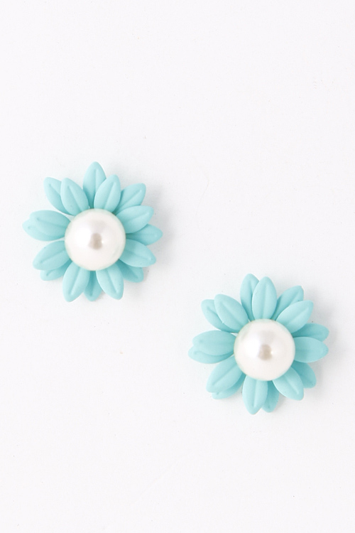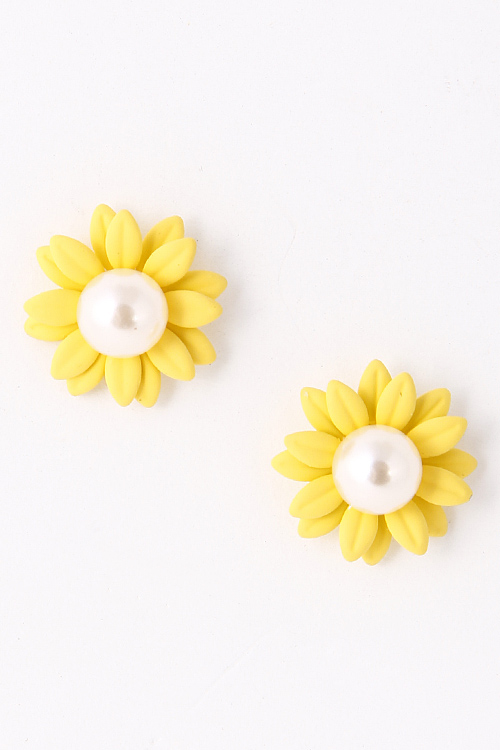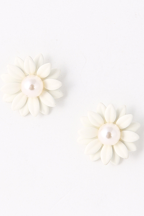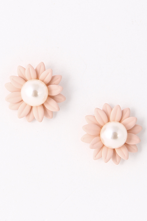 - * Pearl Bead Centered Flower Stud Earring 5ECI6 * .75 x .75" approx.