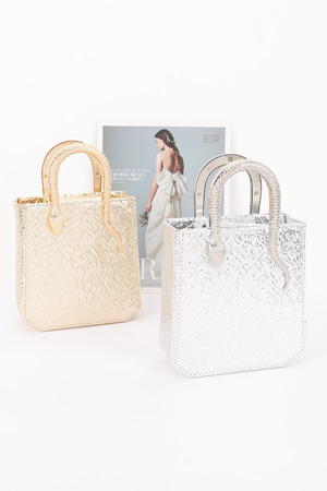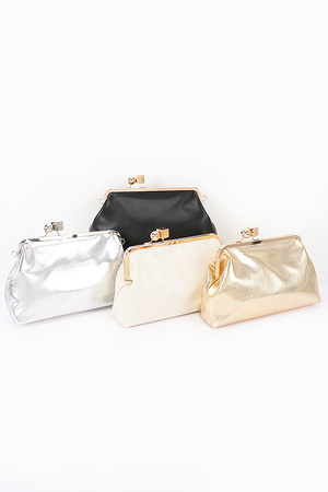 Metallic Faux Leather Metal Frame Bag