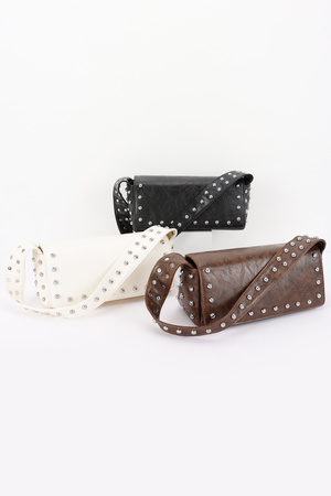 Vegan Leather Metal Studded Shoulder Bag