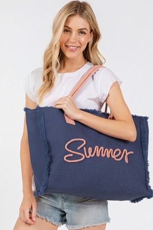 Sewn Rope Summer Letter Fringe Canvas Bag
