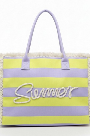 Sewn Rope Summer Letter Fringed Striped Tote Bag