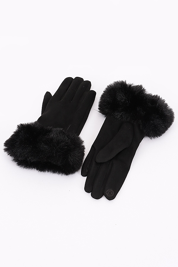 Faux Suede Gloves W faux Fur.