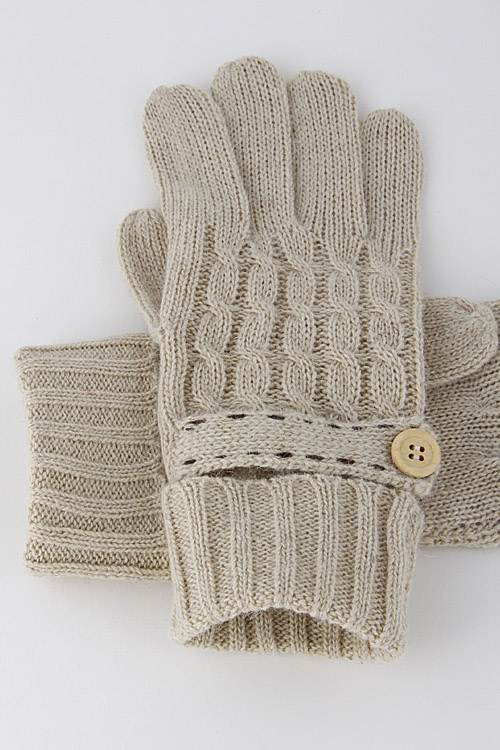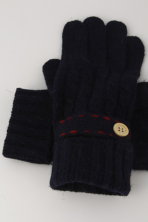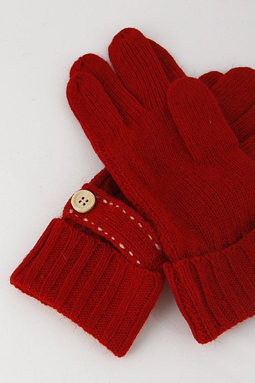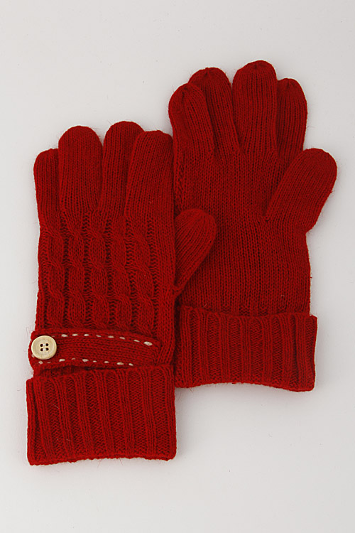 • * Simple Knitted Gloves With Button 6HCH * 3.5 x 8.5" approx.