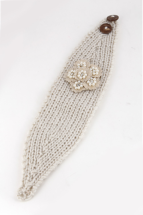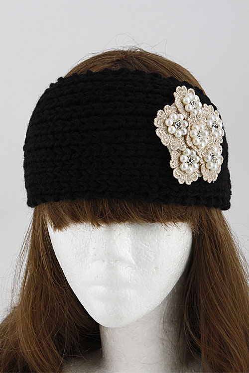 - *Pearl Flower on Knitted Head Band 5JAE * 4X16" approx.
