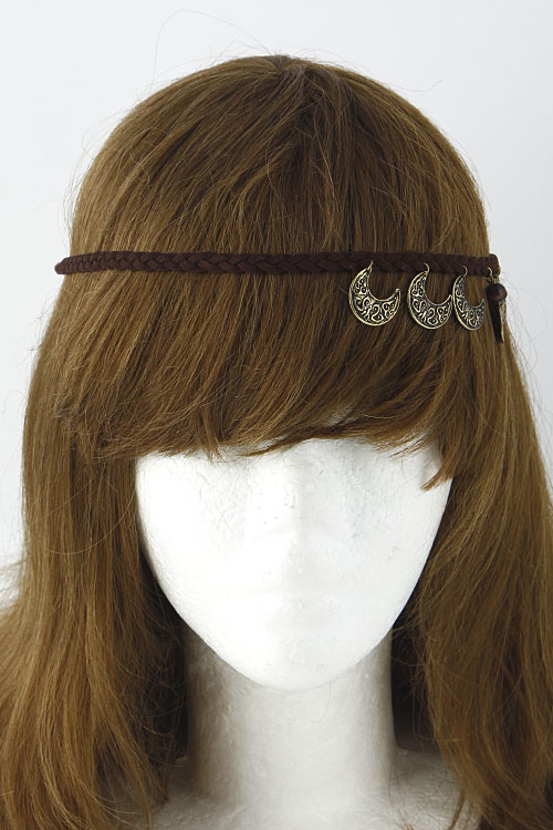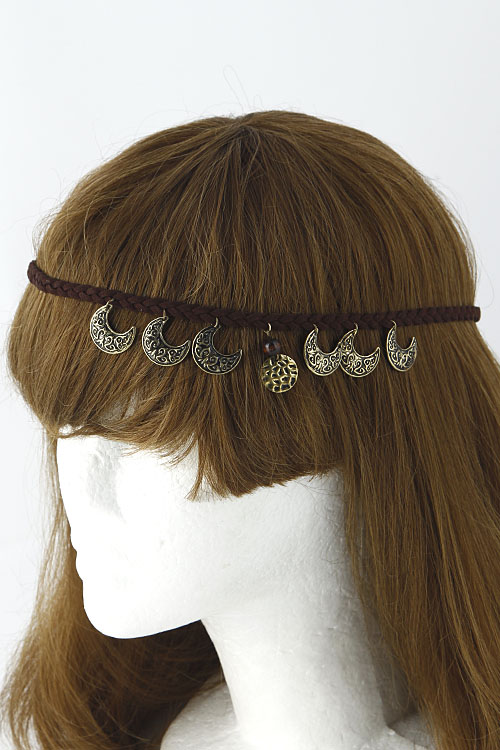 - * Crescent Moon Charm Dangle Braided Head Band 5DCJ * 15" approx.
