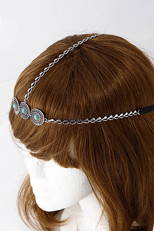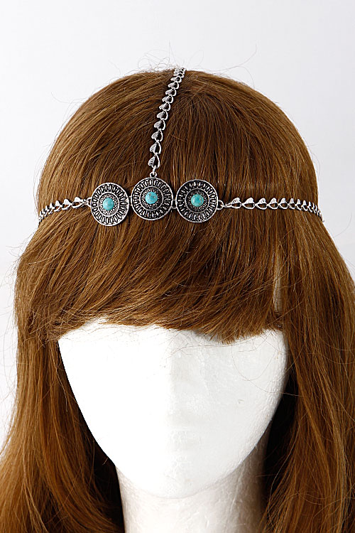 - * Three Antique Medallion Chained Head Band * 2.5 x .8" approx.