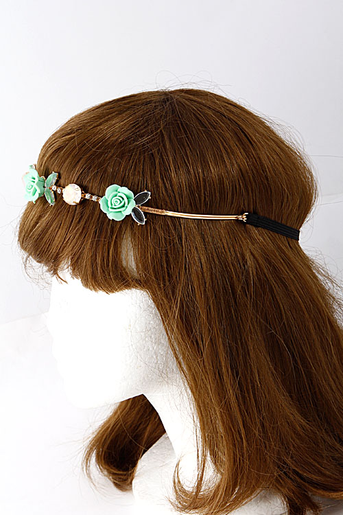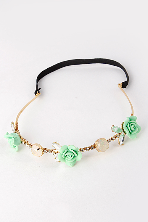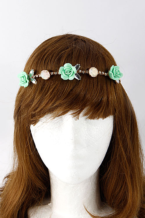 - * Pastel Mint Rose Rhinestone Petal Head Band * 5.6 x 1" approx.