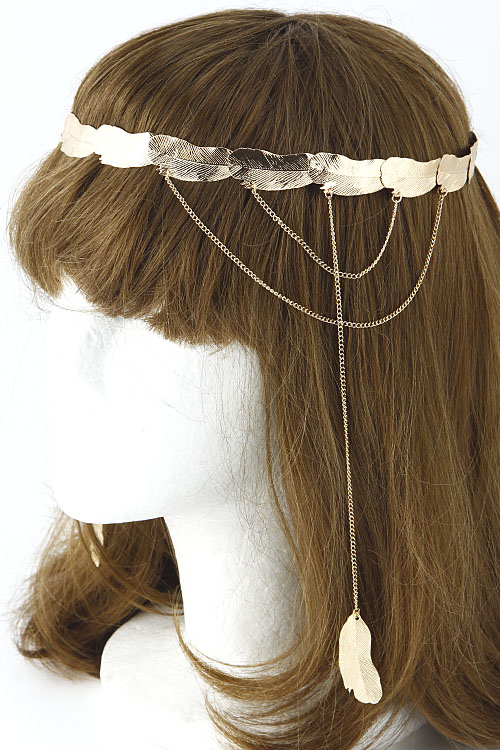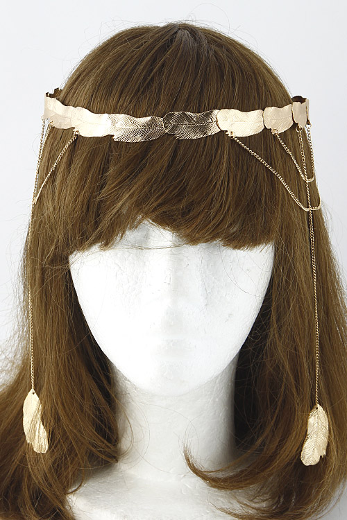 - * Feather Detail Cutout Side Drop Crown Head Jewelry 5DCJ * 7 x 9" approx.