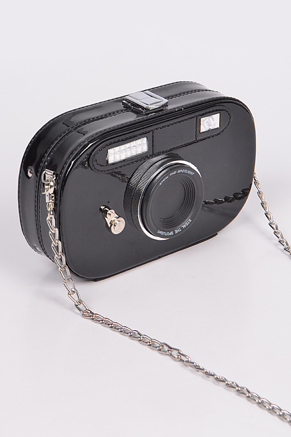 Shinny Faux Croc Clutch W/Plastic Chain.