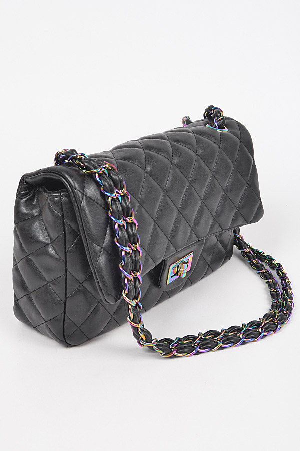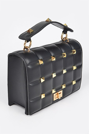 Quilted Flap Crossbody Bag W/Oversized Studs