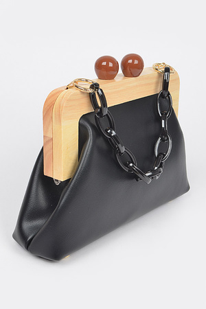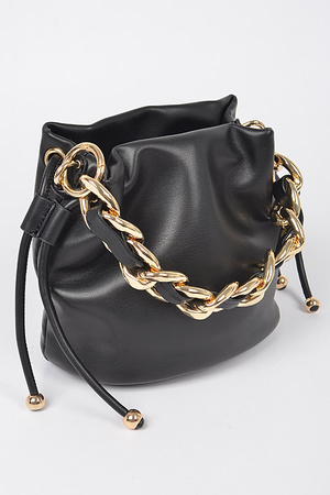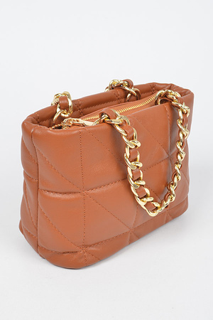 Embossed Faux Leather Chain Handle Shoulder Bag