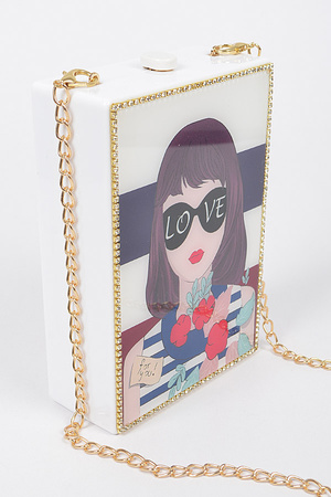 Rhinestone Crossbody Bag W/Round Mini Purse
