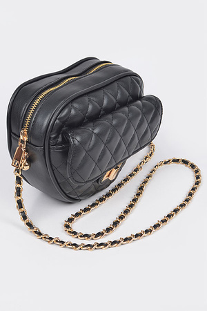 Quilted Faux Leather Heart Shape Crossbody Bag