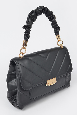 Quilted Faux Leather Shoulder Bag W/Oversized Chain