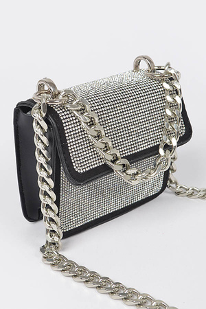 Quilted Denim Shoulder Bag W/Oversized Chain