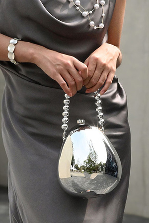 Hand Made Faux Pearl Metal Bead Tube Crossbody Bag