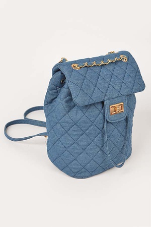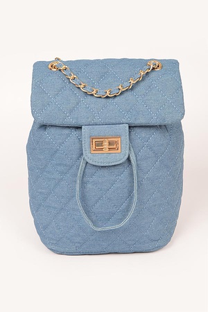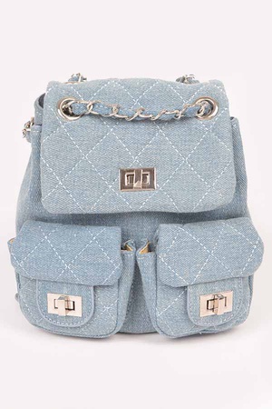 Quilted Denim Double Pocket Front Backpack