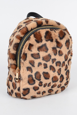Fluffy Faux Fur Animal Print Mini Backpack