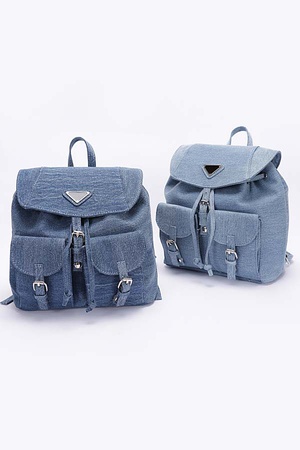 Denim Double Pocket Front Backpack