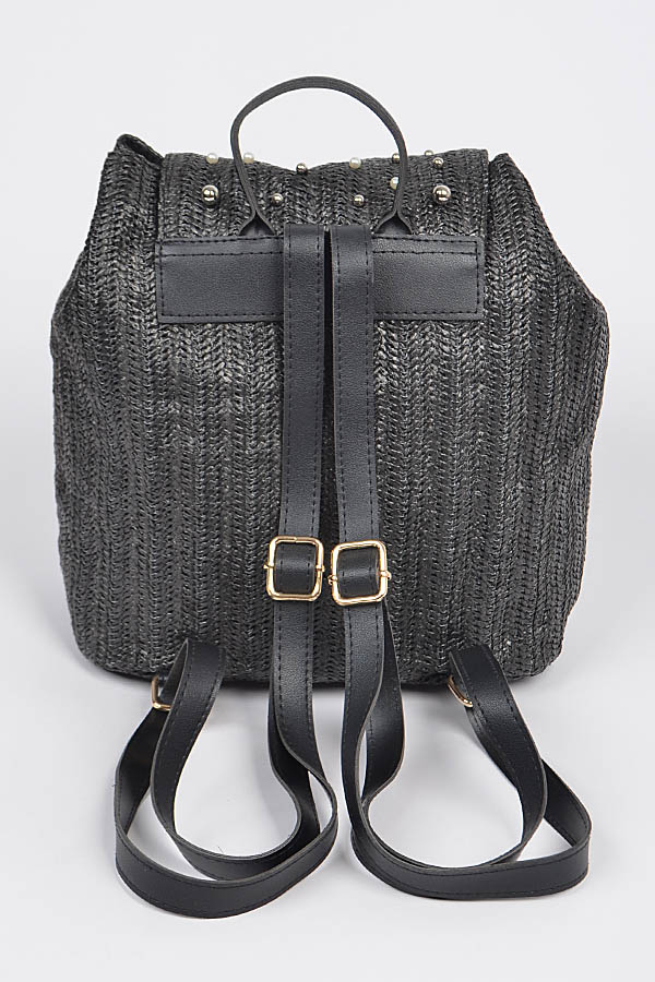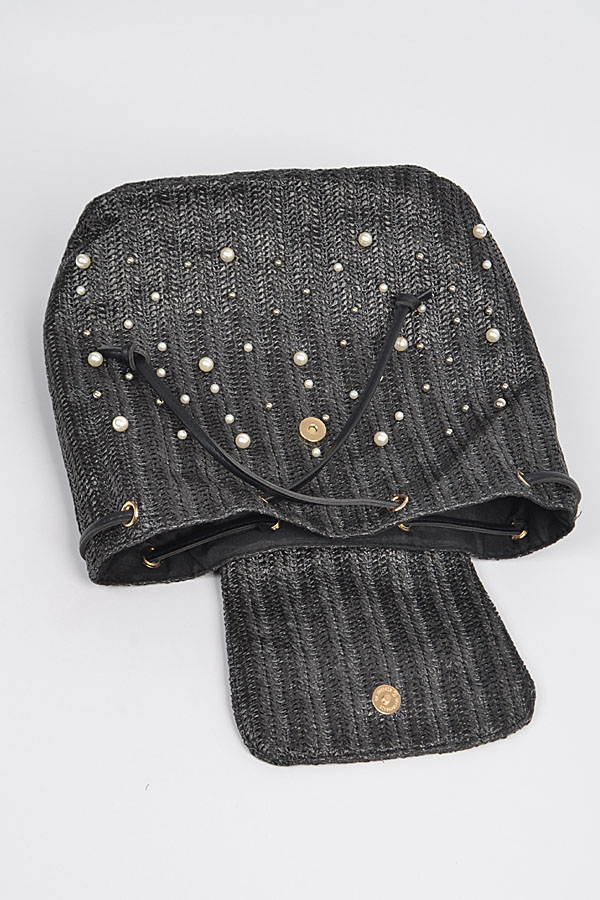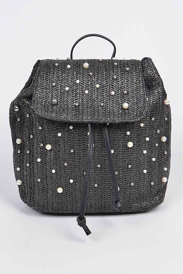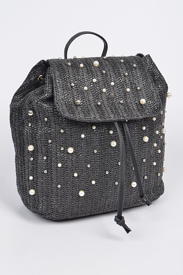 - * Pvc Straw Backpack W/Pearl&Metal Ball