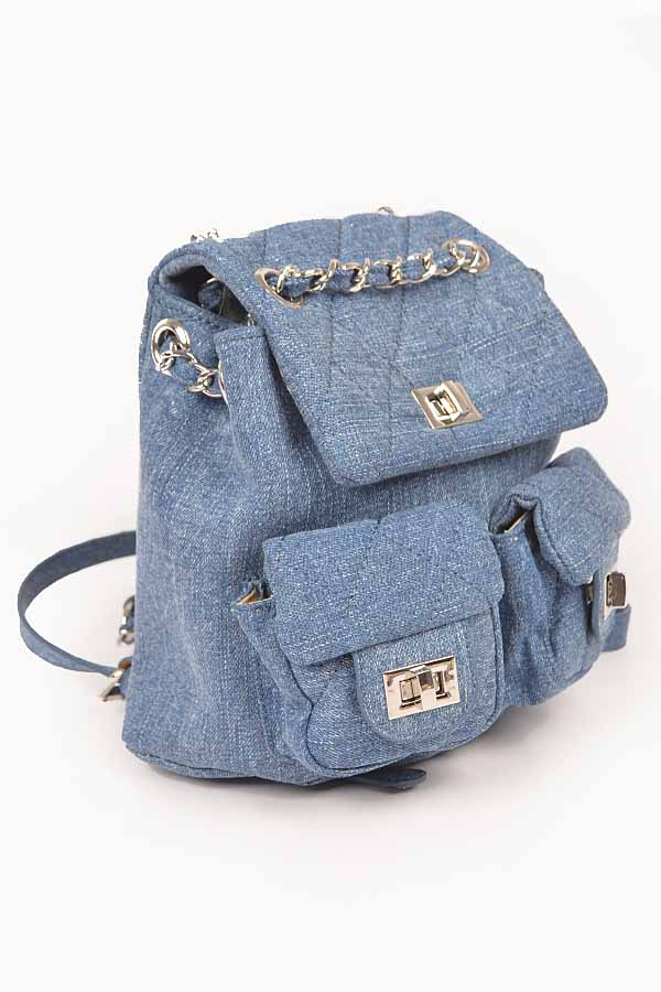 - * Quilted Denim Double Pocket Front Backpack