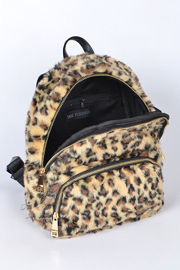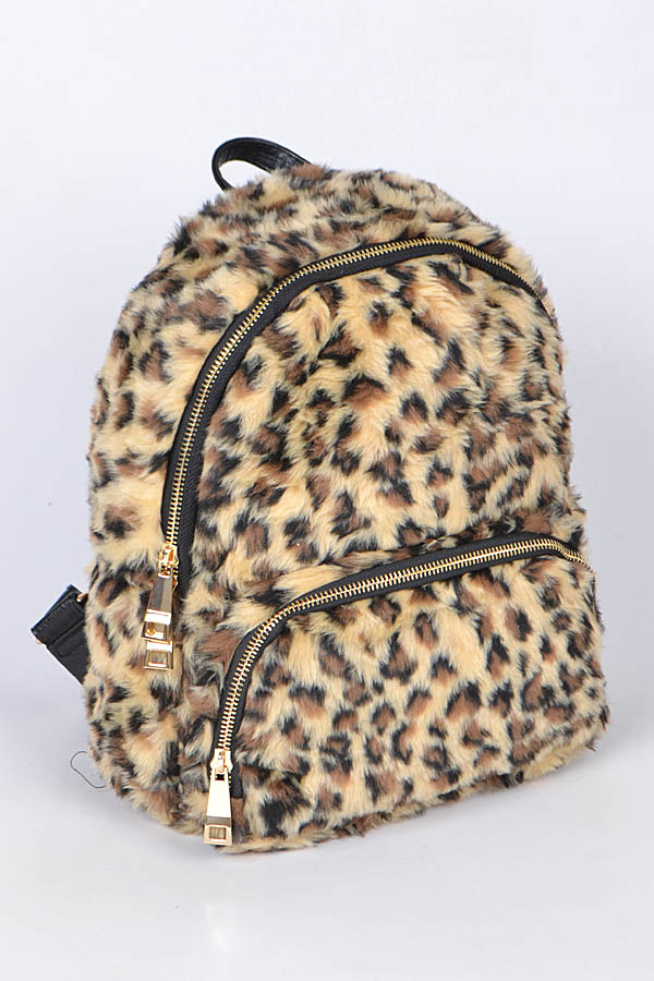 - * Leopard Faux Fur Backpack