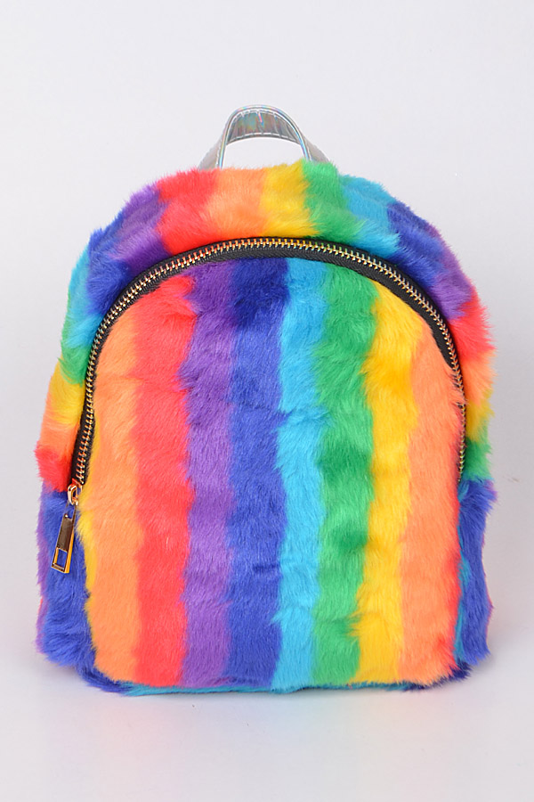 - * Multicolor Faux Fur Backpack