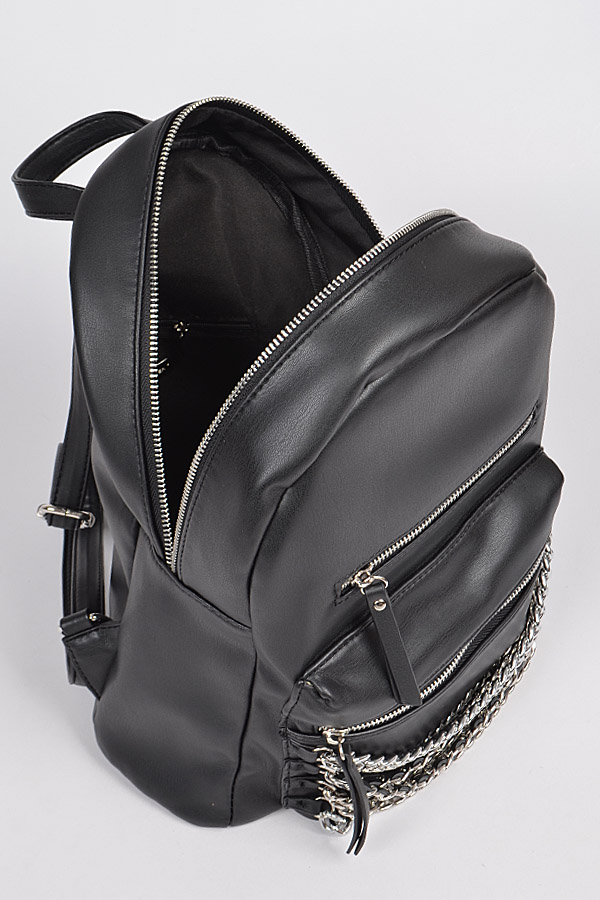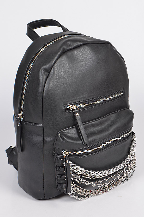 - * Chain Detail Leather Backpack